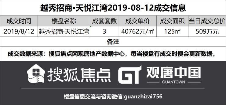越秀招商·天悦江湾2019-08-12成交信息