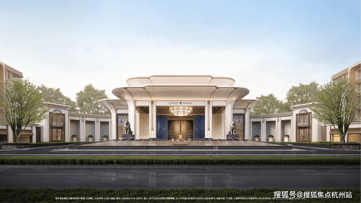 「玉兰门庭」摩登飘逸,环抱式落客前场,大师定制非遗掐丝珐琅门钹,流转温润光华,敬呈归家尊崇礼序,自此启幕生活的华贵序章。