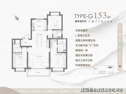 用户价值:270° 环幕视野,高区瞰江;一梯一户,私梯厅入户;独立家政间,功能分区清晰。