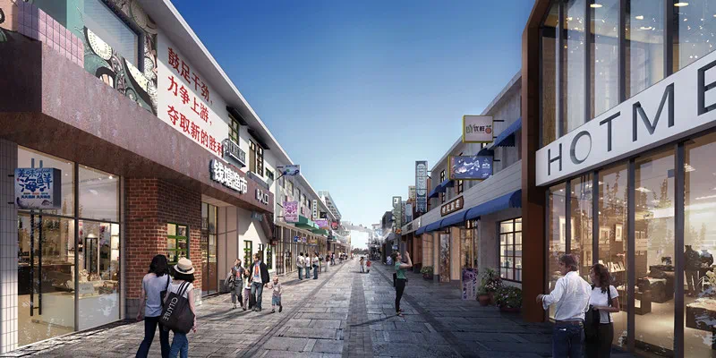 整体鸟瞰图2020年11月,“闻堰老街”工程正式开工动土。老街改造一期区块约55亩,将打造国内排名前列“穿越1980”江鲜文化主题街,计划于2021年5月试营业。