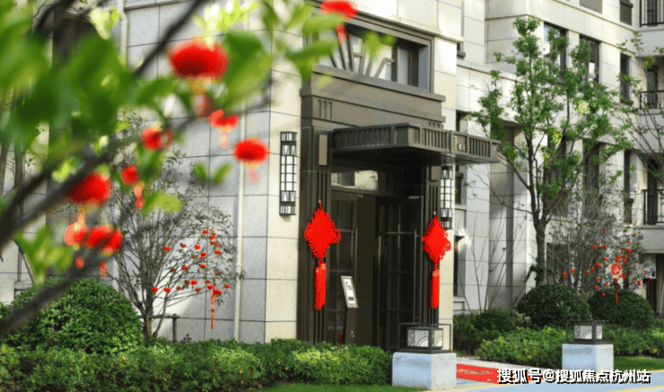 走入社区,一个个中国结挂在楼面上,道路两侧的景观树上挂着精致的小灯笼,喜庆祥和,象征着幸福与圆满。
