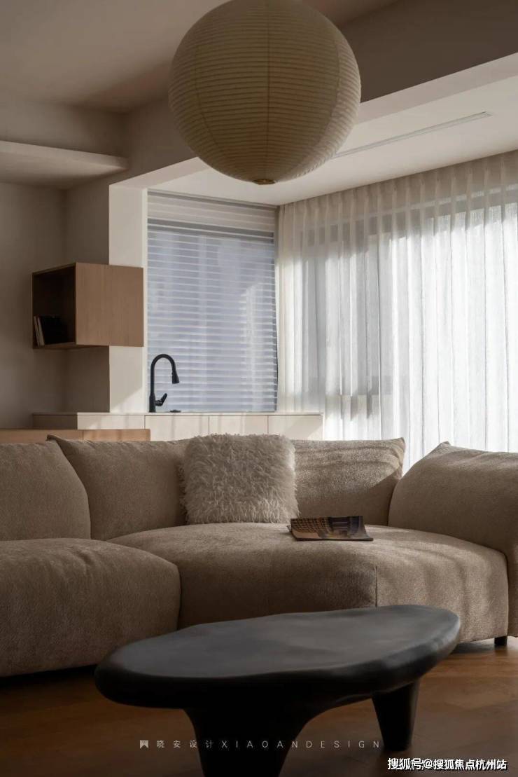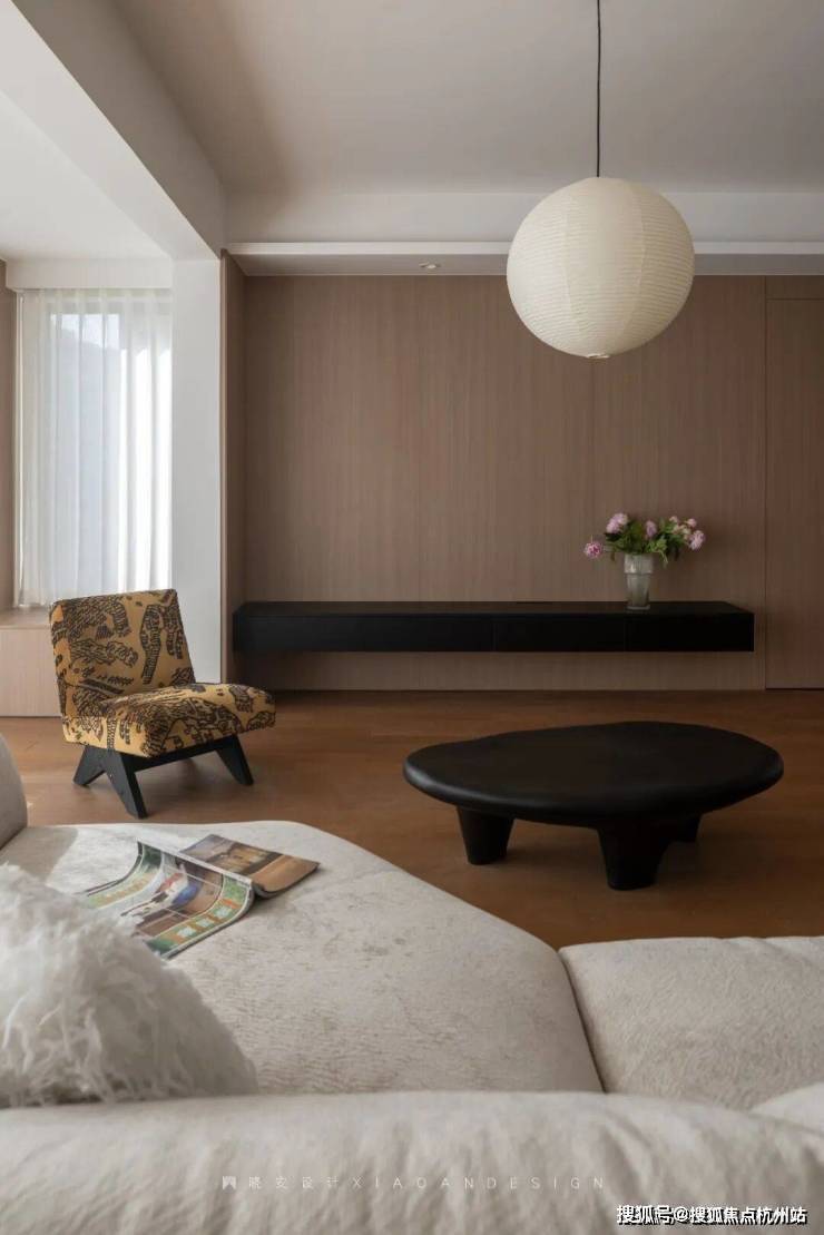 原木色与白色的相遇,是最温柔的表达,再邀光影轻盈舞动,让居家生活满是松弛与惬意。花瓣形沙发自带极强的包裹感,金色单椅恰似点睛之笔,既为空间添了一抹雅致亮色,又带来无可替代的舒适体验。垂落的灯具散发着柔和光晕,随手翻开一本杂志,随意落座,慵懒闲适的日子便缓缓开启。