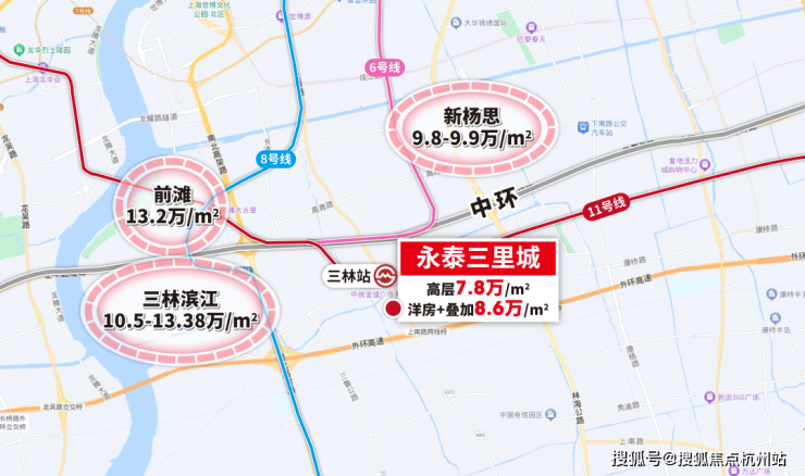 事实上,三林滨江在空间上与前滩更为贴近,但永泰三里城在时间距离上更占优势。