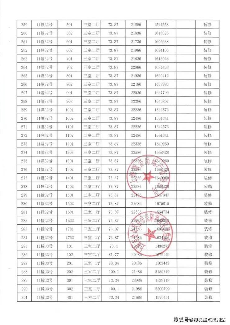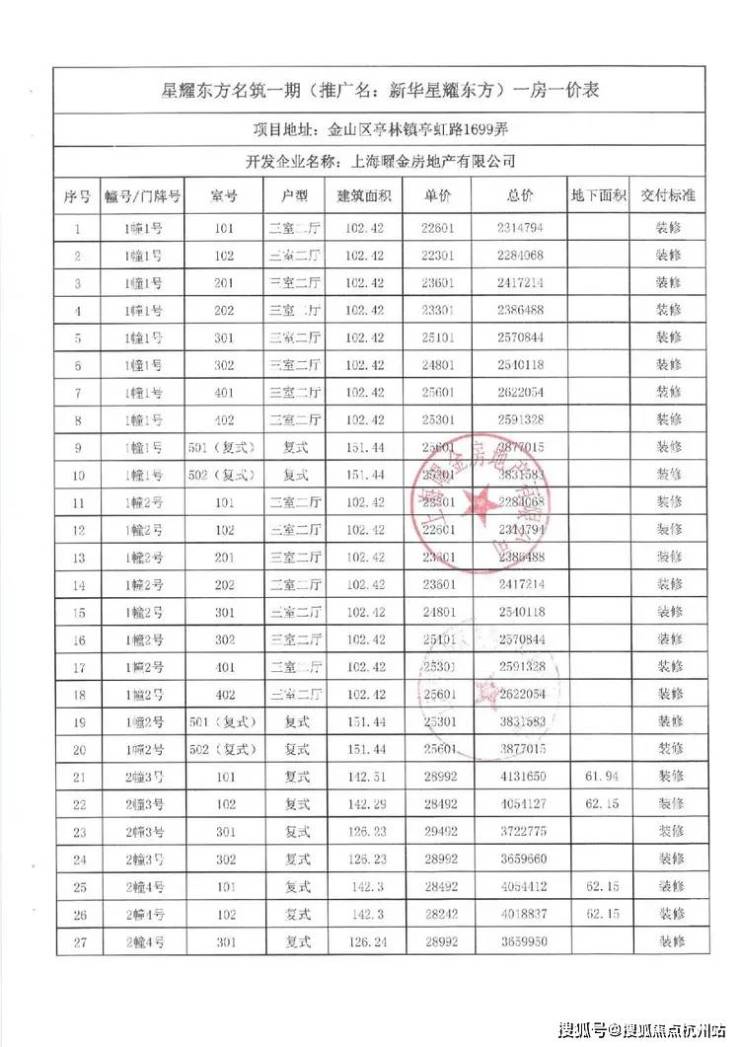 项目一房一价表
