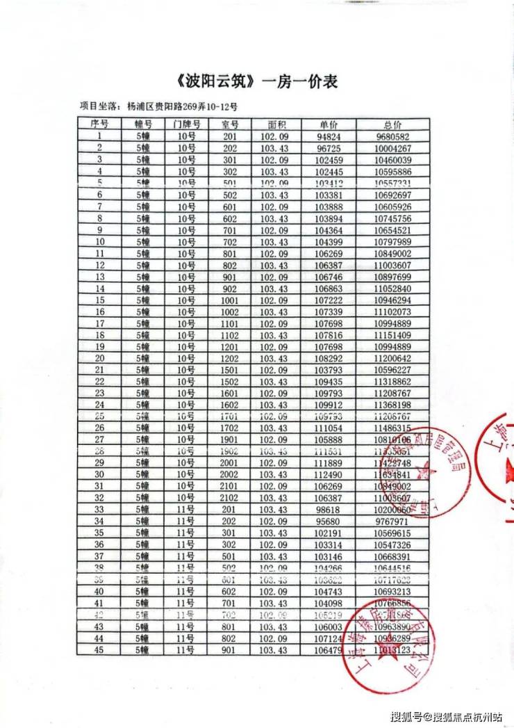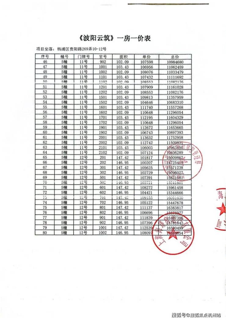 项目加推房源一房一价表▼