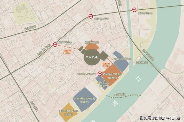 项目距离江面直线仅约 500米,在一众杨浦项目中是翘楚。更难得的是,项目南面是上海国际时尚中心和杨树浦路电厂旧改项目,均是低矮建筑,意味着 项目的中高区房源能有一线滨江开阔视野!