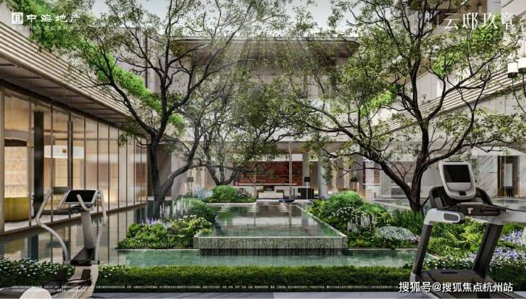 项目南区配备了一个 高端会所,内含 健身房,沙龙会客厅,私宴厅、恒温泳池等。恒温泳池紧邻下沉庭院,大面积落地窗设计打通了室内外的视野,中间无立柱遮挡,为家庭带来了度假式的亲子畅游体验。