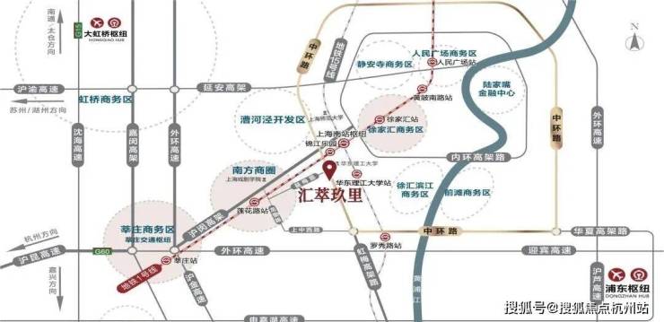 汇萃玖里坐落闵行与徐汇区主城的交界的黄金中环地带,中环上中西路下匝口,虹梅南路与益梅路交汇处、东至虹梅南路(中环高架)、南至北潮港、北至益梅路。
