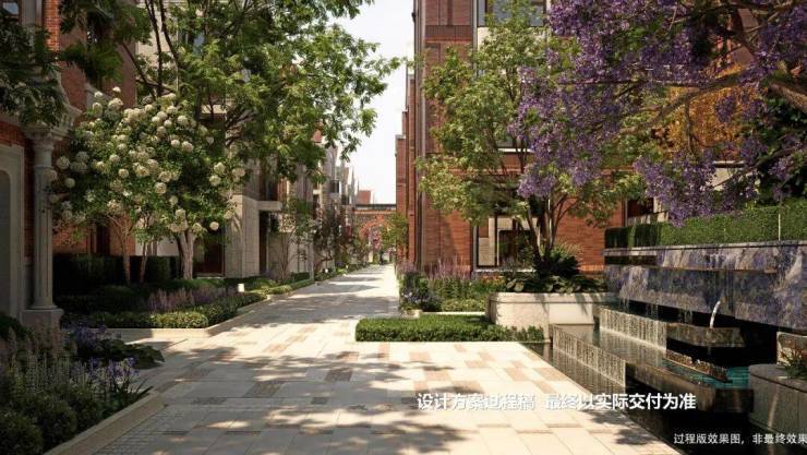 特别设计了八大映象典藏场景景观节点,有百年梧桐下的静谧巷道串联各景观节点,还有充满文化积淀的海派艺术庭院等,营造出精致、典雅的高阶生活氛围。