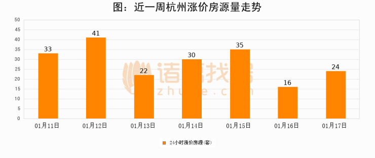 根据诸葛找房数据显示,杭州24小时涨价房源量为24套,较01月16日增加8套,环比上涨50%。与此同时,涨价房源占比小幅扩大,业主信心有所提升。