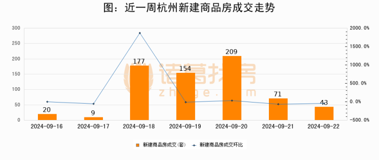 【杭州成交日报】09月22日新房成交43套、二手房165套;涨价房源101套