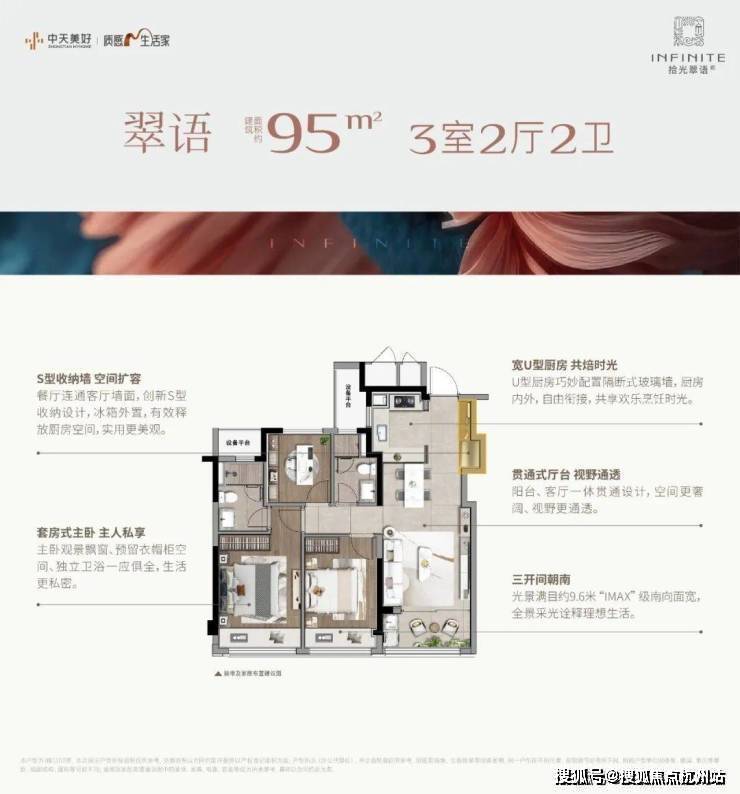 全盘共434套可售房源,只设置建面约95㎡、103㎡两个面积段,比大部分楼盘的起步户型节制了至少10㎡,足够省出一辆车了。同时,藉由“阳台只计一半面积”的优势,让每一套房子都有着90%以上的使用率!
