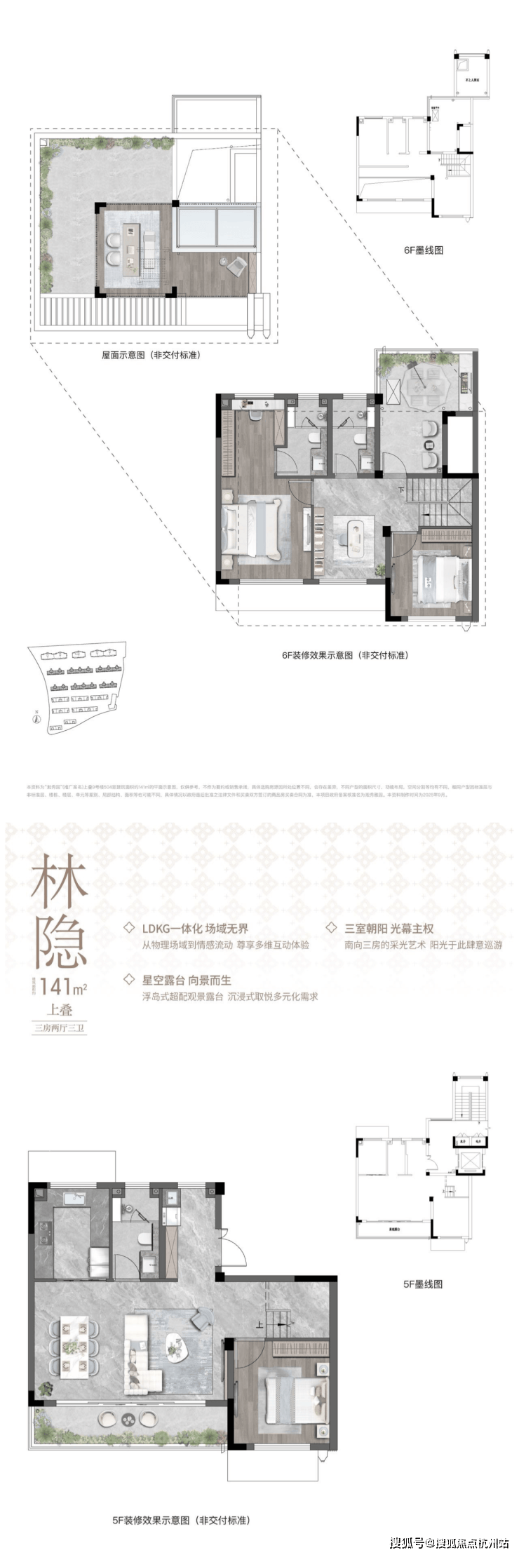 141㎡叠加别墅:四房两厅三卫,动静分区,星空露台设计,适合三代同堂。