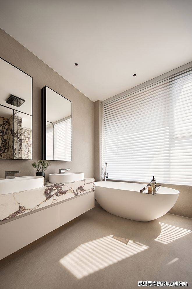 主卫宽敞明亮,配备有独立的浴盆,为居住者创造了独属的休闲放松空间。