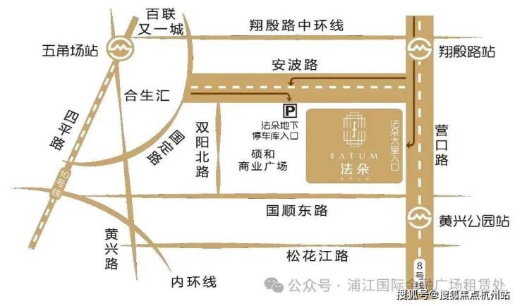 地铁:距 8 号线翔殷路站约 260-300 米,步行 3 分钟直达;距黄兴公园站约 800 米,双轨覆盖