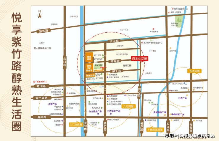 商业与生活 :临近城北商圈,紫竹路沿街商业成熟,购物、餐饮、银行(浦发、建行、昆山农商行)、邮政等配套齐全,生活便利性高