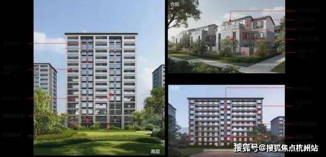 星缦和润城整体建筑风貌以精致有力的线条为主要构成元素,且具有简洁通透的立面。项目建筑设计合理呼应这两种城市设计元素。灰白对比的主色调,突出典雅的调性。保留宋式传统元素,并通过大面积玻璃、涂料、首二层石材+铝线条等简洁而现代手法,匹配现代品质生活。