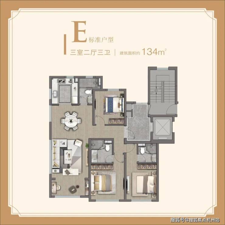 「约134㎡ 3房2厅3卫」