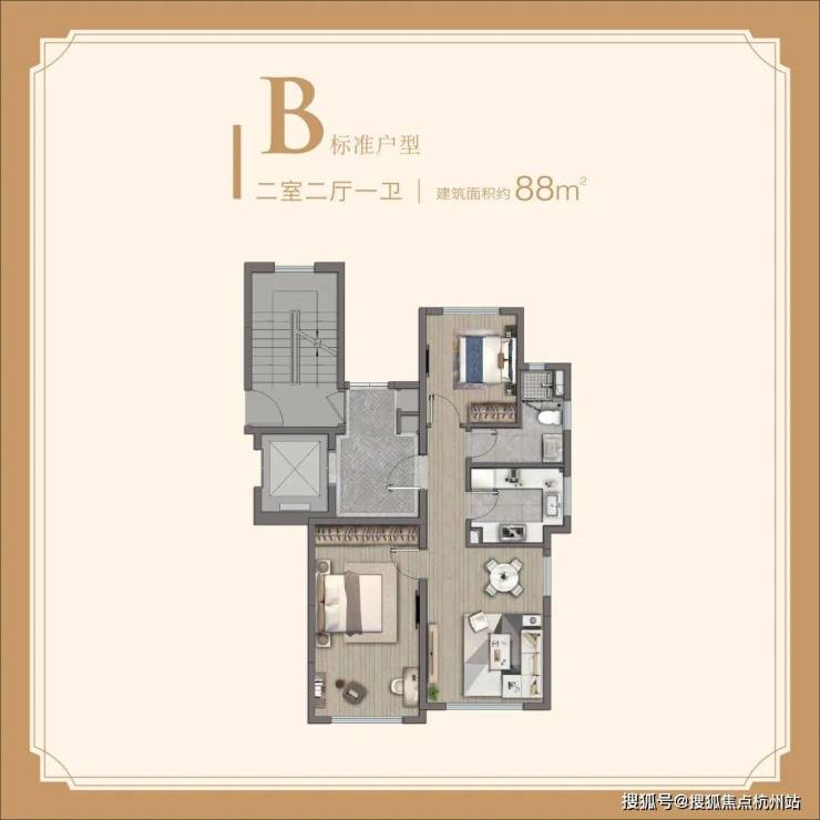 「约88㎡ 2房2厅1卫」
