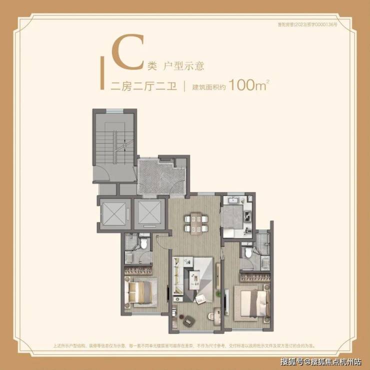 「约96㎡ 2房2厅2卫」