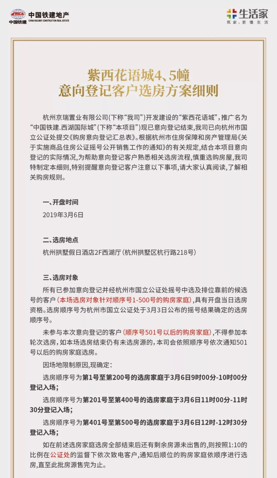 选房细则公示,“万人摇”西湖铁建国际城3月6日选房