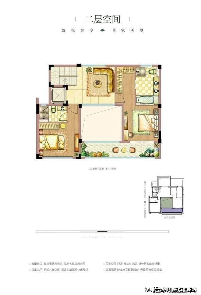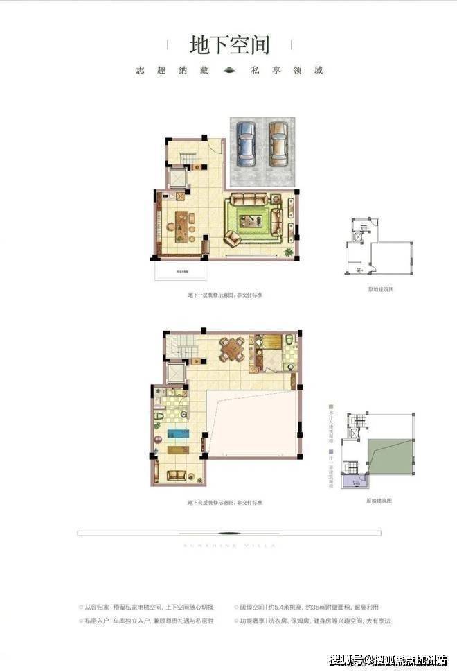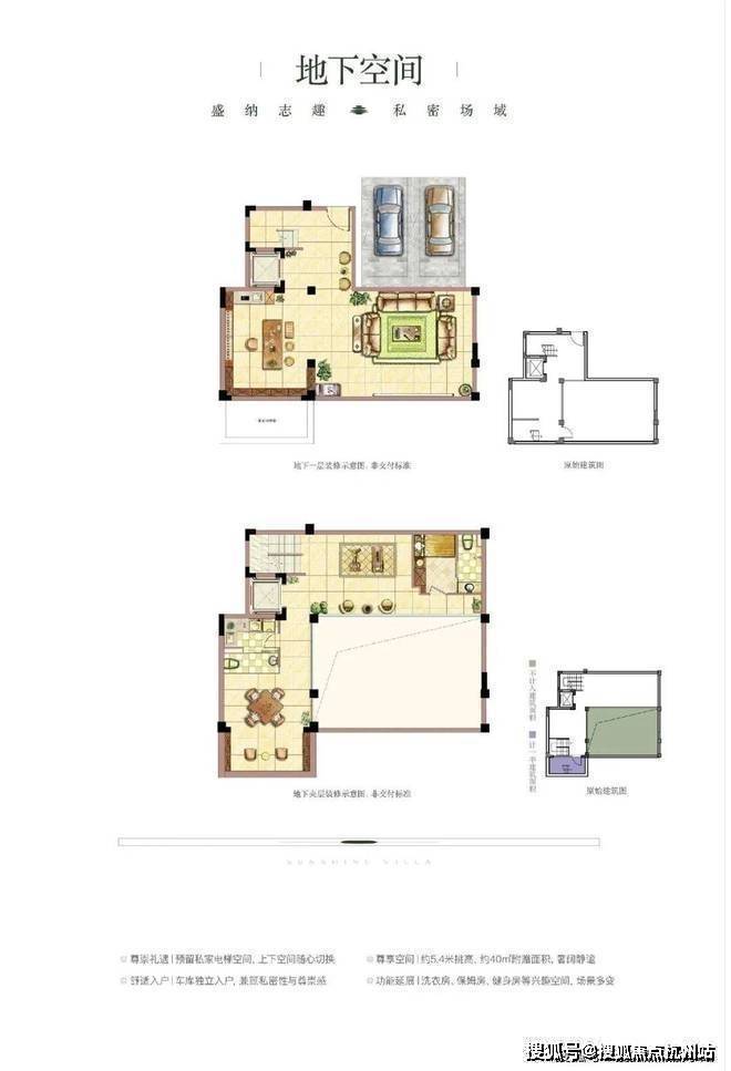 联排别墅:面积在415-475㎡之间,约5.4米挑高,有高附赠面积,采用代际分层设计。