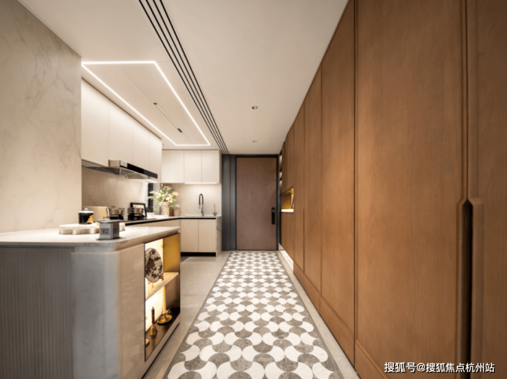 这是一个非常巧妙的设计,比如将冰箱塞入这个凹槽,从而释放厨房的冰箱空间,延伸灶台的面积,或者可以做岛台...