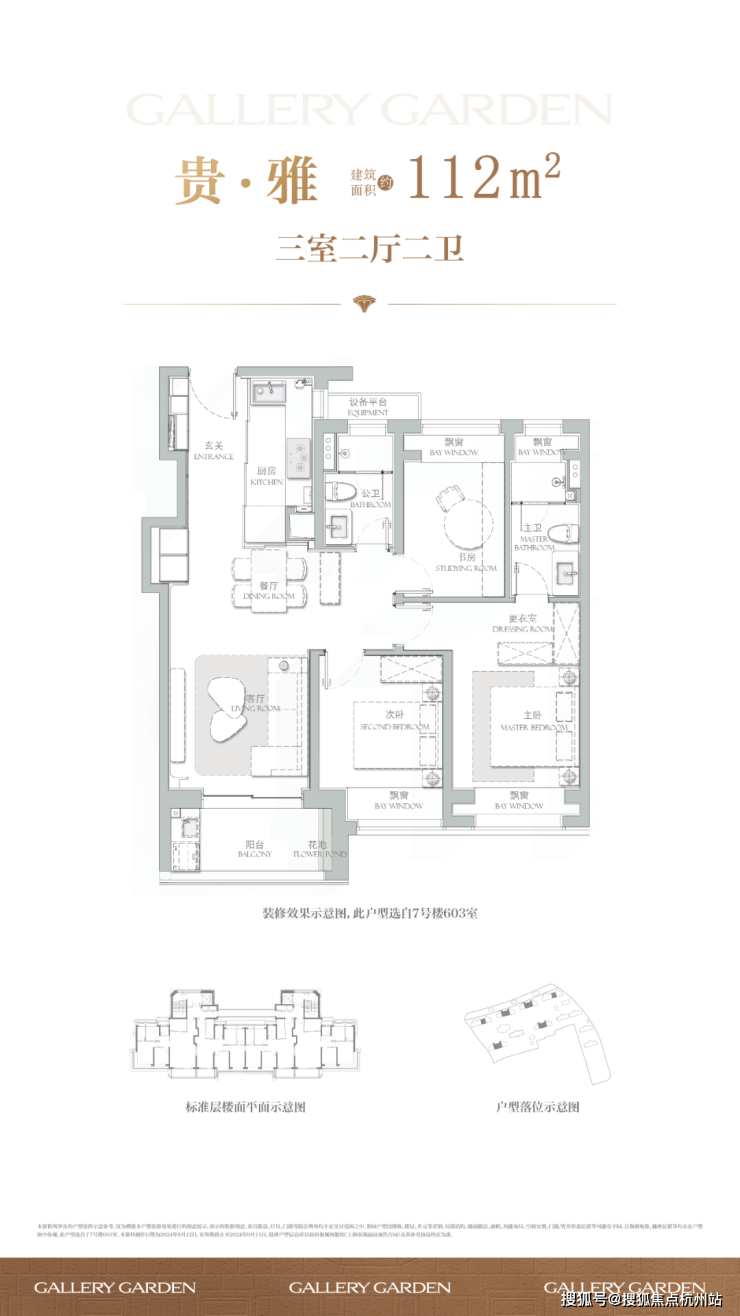 项目舍弃了传统逼仄的百平三房,将最小面积提升到了建面约112㎡,而这12个平方的提升,让整体户型的空间尺度感达到了新的高度。