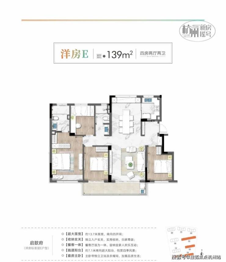 【餐客一体】餐客厅连为一体,容纳全家人欢乐互动【跑道阳台】约7.1米南向超大阳台,悦赏四季风景
