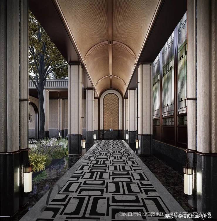 生动的海派经典场景,还从室外的园林景观延伸到了室内的公区。比如涵盖健身、阅读、宴请等 多重空间的架空层,能让业主足不出户享受现代功能的同时,感受海派的优雅萦绕。