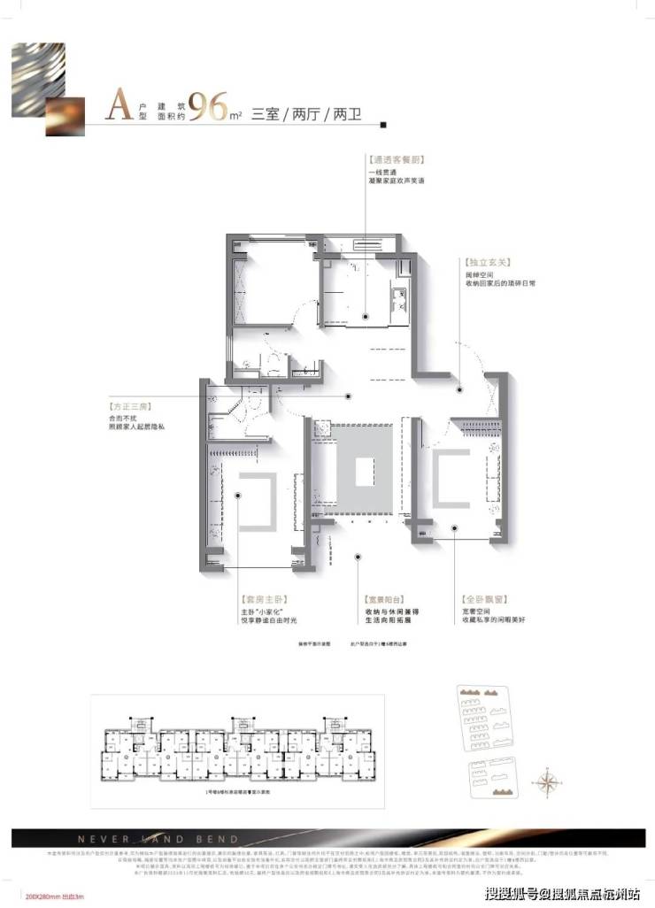 建面约96㎡精质三房,一步到位舒适人居:该户型方正格局、南北通透无连廊,既容纳二人世界的浪漫,也可将三口之家的幸福一并珍藏。