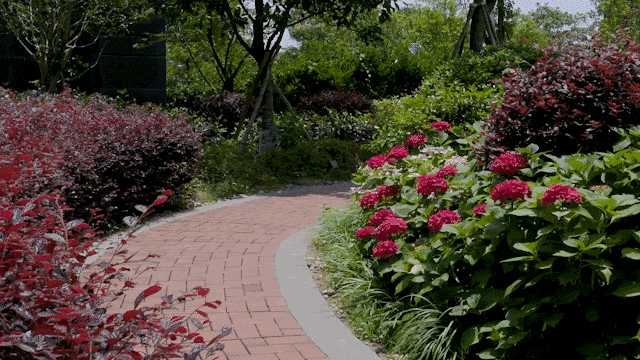 一棵棵绿植,是散落在社区里一个个点,当点连成线,于是就能看到全域呈现的中轴景观。俯瞰社区,视觉效果超具冲击力,满眼间尽是绿意。