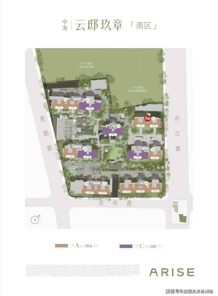 中海·云邸玖章分为南北两区、三个地块。
