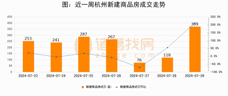 【杭州成交日报】07月29日新房成交369套、二手房267套;涨价房源83套