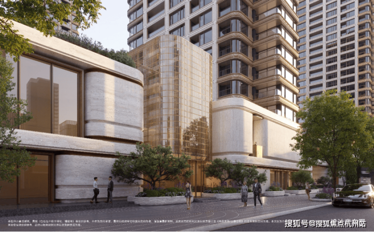 项目建筑外立面灵感源自名表马耳他十字工艺,采用名贵石材+金属铝板,以东方圆融思想整合以雕刻的石材锻打的金属,呈现出独特的人居地标美学。采用大量的玻璃幕墙,增强建筑的通透感和现代感。
