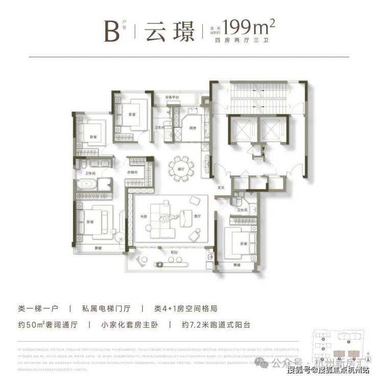 首先从小区品质来看,宸云并不是那种混合刚需与改善的综合盘,而是纯粹为改善群体定制。164户的体量,配上约1800方的下沉式会所,恒温泳池、私宴厅、健身房、书吧等功能一应俱全,真正实现了“少数人的圈层生活”。