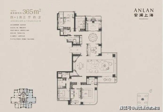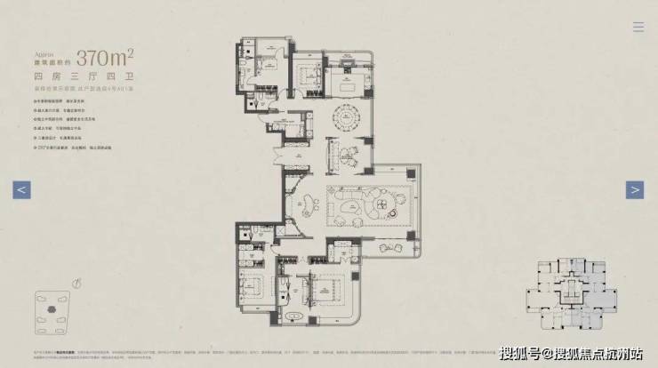 以下为建面约370㎡户型过程稿亮点: