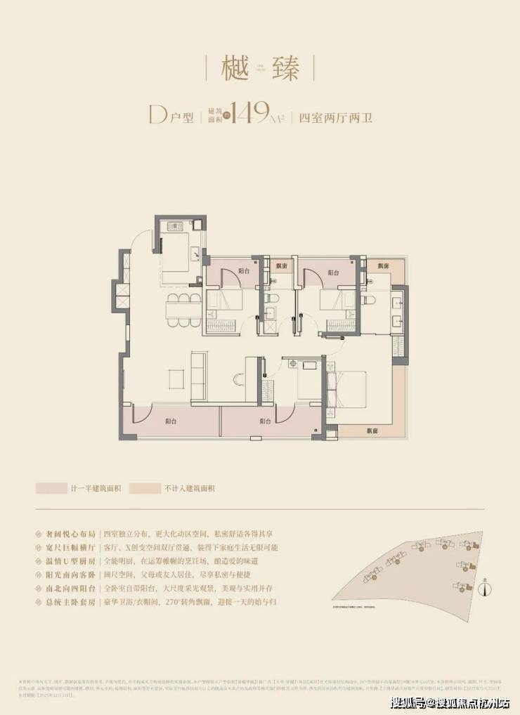 建面约148㎡户型更是做到了惊人的四阳台配置,远远超过新规标准。
