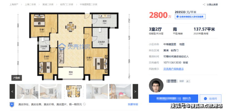 2800-3600万是当下虹口、杨浦等市区次级地段四房的主力总价段,这个总价段原先根本不敢想能买进黄浦。