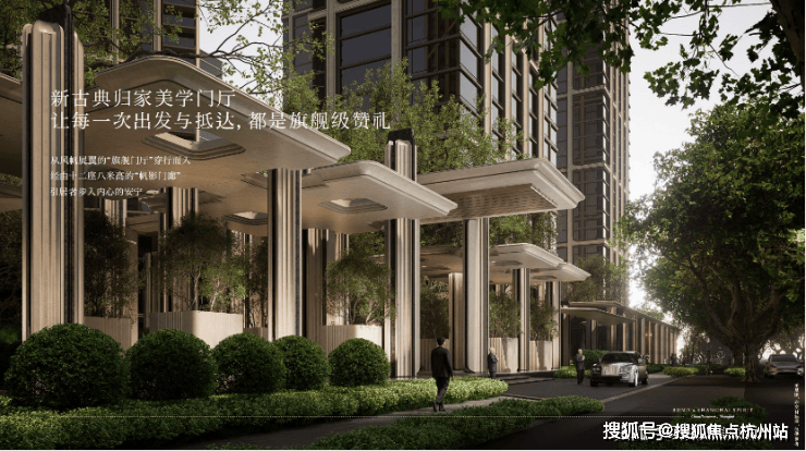 第一重:旗舰门厅与十二帆影:业主先穿过寓意“上海之帆”的旗舰门厅,再路过12座8米高的“帆影门廊”,建筑语汇先将滨江的航海文化融入归家礼序.
