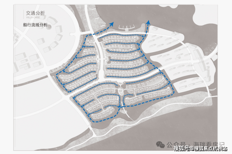这个项目与迪拜棕榈岛确实也有相似之处,两条内部规划道路为主轴和车行道路,联排别墅如棕榈叶一般舒展开来。