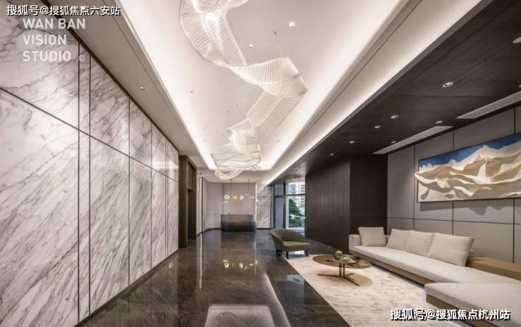 每栋楼入口种植罗汉松,彰显尊贵气质;公区背景墙采用巴西进口天宝石石材,与观云钱塘城同款,尽显奢华质感。从整体规划来看,项目总占地14628㎡,建筑面积72096㎡,容积率约4.9,规划为145户纯大平层社区,保证了居住的纯粹性与舒适性。