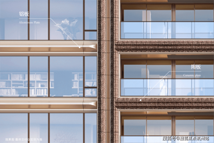 建筑四面均采用铝板+玻璃+定制陶艺,历经百次试烧锻造鎏金陶板,成就上海唯一国际东方艺术全景立面,每面皆城市封面,整体采用非对称的结构设计,回应上海东西方文化交融碰撞的城市美学。大胆采用四排楼布局,以保证户户通风采光,类一梯一户无连廊设计,将入户私密性做到极致。
