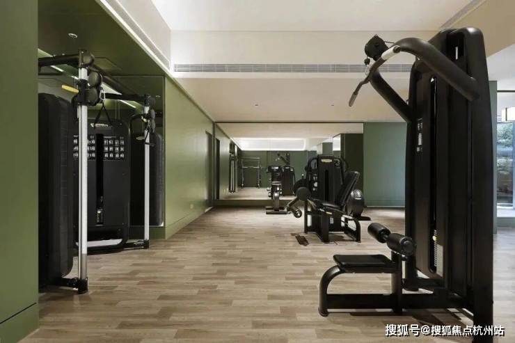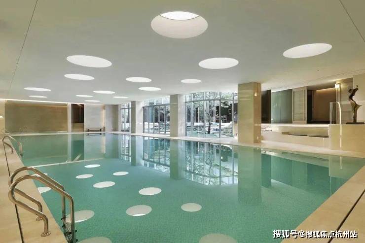 入户大堂的负一层,与下沉庭院相结合,共同组成建面约1200㎡的会所,恒温泳池、健身房、瑜伽空间、童玩区等一一备齐。