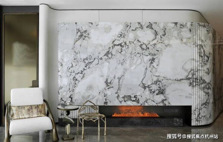 弧线造型的木饰面、多种肌理的艺术玻璃、水墨色调的雅士白大理石,摩登而明媚,将舒适度与仪式感调和得水乳交融。