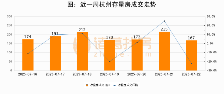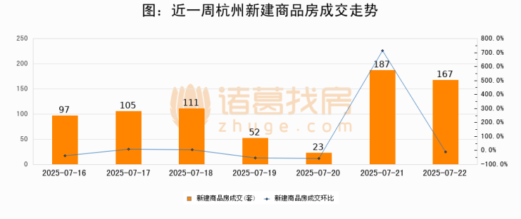 【杭州成交日报】07月22日新房成交167套、二手房167套;涨价房源22套