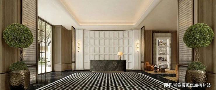 社区主入口更是兼具豪华酒店与海派元素设计风格,挑高约6米的入户大堂、水系景观与艺术家共创作品交相辉映,奢华感和高级感拉满!