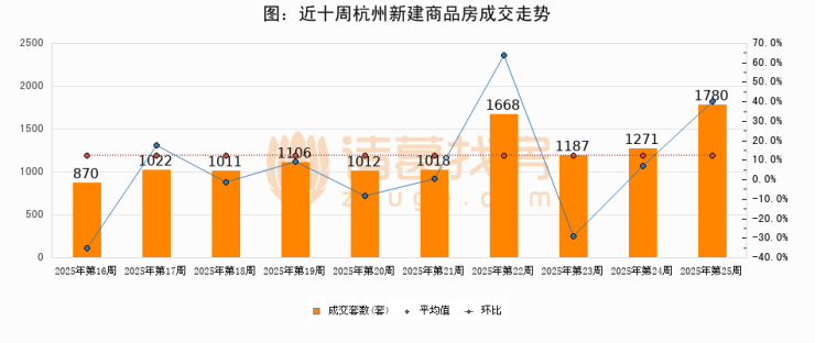 【杭州成交周报】第25周新房成交1780套,二手房1421套,涨价房源188套