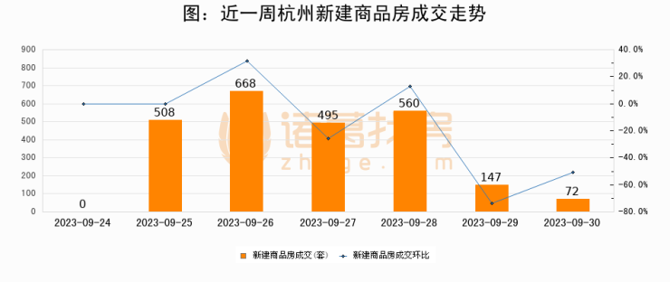 【杭州成交日报】09月30日新房成交72套、二手房23套;涨价房源24套