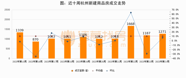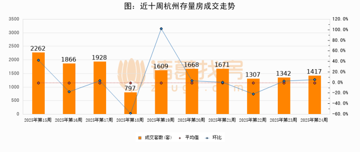 【杭州成交周报】第24周新房成交1271套,二手房1417套,涨价房源282套
